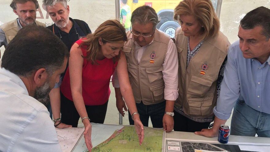 Al respecto, la presidenta del Gobierno andaluz ha hecho hincapié en que “el viento está cambiando y no nos ha venido bien este cambio”, indicando además que “su velocidad es alta, esta noche ha tenido momentos de hasta 40 kilómetros por hora, de hecho avanzó siete kilómetros en tres horas debido a este viento, que es muy cálido y que está dificultando la tarea, incluso ahora por tierra”.