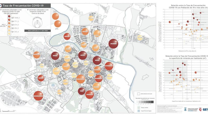 La cartografía revela que en Zaragoza la mayor incidencia de COVID-19 guarda relación con el hacinamiento y la población más envejecida