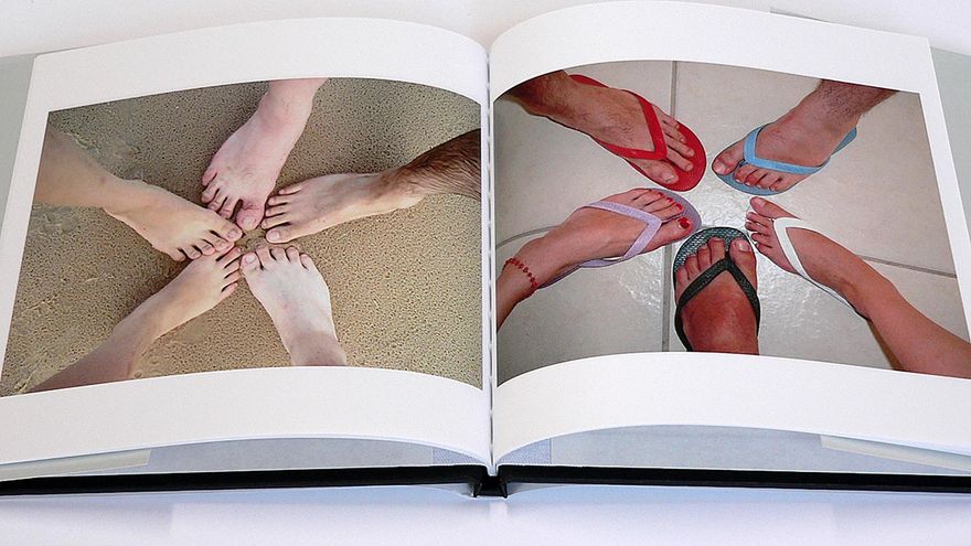 Nada más cruzar las puertas de la sala, da la bienvenida la instalación 'Other People's Photographs', compuesta por 96 libros que, a modo de estudio antropológico, agrupa fotos encontradas en Flickr y otras plataformas bajo epígrafes como “pies”, “cumpleaños”, “tetas”, “comida” o “tazas”. El resultado, casi cómico, da mucho que pensar. Lo mismo ocurre con el resto de trabajos que componen la exposición, que, según cuenta su comisario, Pedro Vicente, explora “la idea del archivo como material para el arte contemporáneo”.