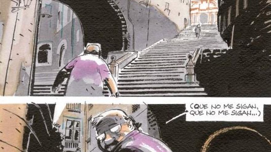 Cuando surge la oportunidad de retomar la historia y publicarla en Italia, el esquema que ya teníamos hecho, hace ya más de 20 años, cambia al entrar un componente nuevo: personajes que luchan contra la decadencia física. El cómic sigue el ritmo de la novela negra clásica, con muchos golpes de efecto, pero los personajes van contra el arquetipo del género. Mientras estaba trabajando en ella vi el viraje que ha dado la gente con la que, en teoría, estábamos en las mismas trincheras. Frente a esto, quise plasmar en los protagonistas a la gente que no se ha rendido, que puede tener sus dudas, pero que cuando llega el momento decisivo, actúa con coherencia. Ocurre con Segis, el periodista que protagoniza la trama, cuya imagen está inspirada en Vázquez Montalbán, pero también con su amigo Lucas, que tiene el rostro del desaparecido Paco Camarasa, el librero de Negra y Criminal. Además, Paco estuvo detenido conmigo, fuimos vecinos de celda... Podría decirse que es género negro con abueletes.