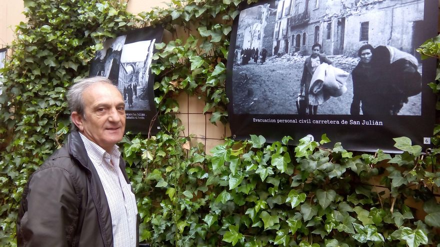 La capital turolense saltó a los titulares de todos los periódicos internacionales hace 77 años por su protagonismo en la Guerra Civil. Las crónicas de Hemingway o las fotografías de Robert Capa contaron la crudeza del conflicto desde esta ciudad. Las imágenes de la guerra se muestran estos días en una exposición organizada por la Asociación de Vecinos de San Julián, en la que Fernando muestra parte de las fotografías que ha ido recopilando durante estos años. Cuelgan de las vallas de un colegio público, junto a poemas de Labordeta.