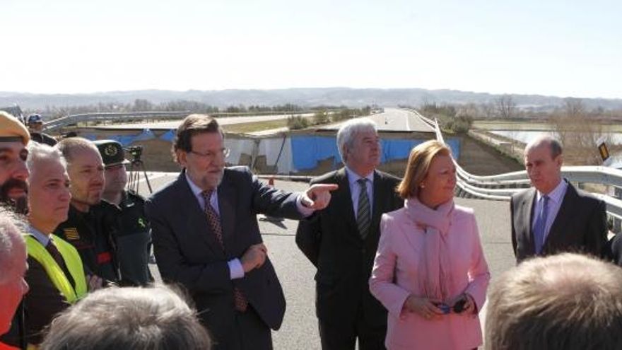 Acompañado de la presidenta del Gobierno de Aragón, Luisa Fernanda Rudi; del consejero de Obras Públicas, Rafael Fernández de Alarcón, y del delegado del Gobierno en Aragón, Gustavo Alcalde, Rajoy ha finalizado su recorrido visitando el punto de la ARA A-1 que se derrumbó el pasado día 2 de marzo.