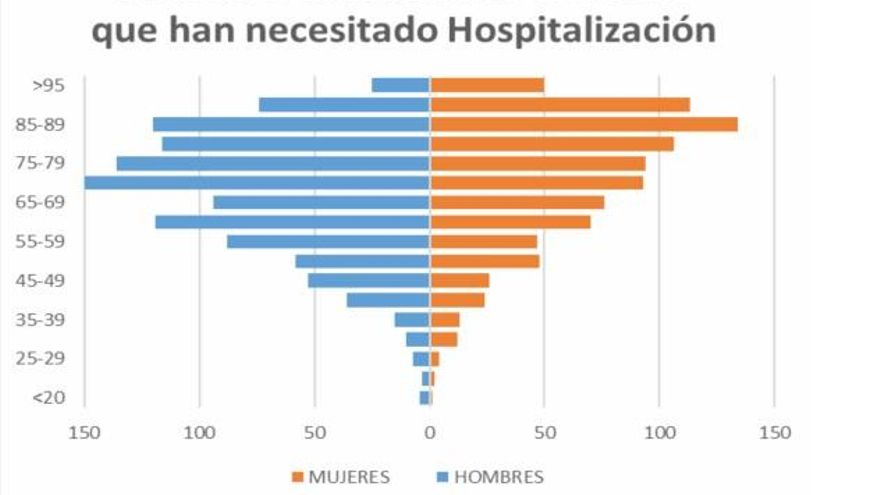 Respecto a la distribución por edades de los afectados, el 89% de los ingresados tiene más de 50 años y el 60% más de 70 años. Asimismo, el 94% de los ingresados en UCI tiene más de 50 años y el 51% más de 70 años. En cuanto a la letalidad, el 90% de los fallecidos tiene más de 70 años y el 31% tiene más de 90 años.
