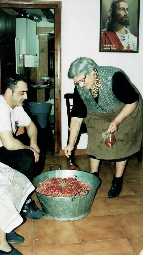 Bajo la denominación de matacerdo o matapuerco, la matanza ha sido siempre sinónimo de una jornada festiva y familiar en Teruel y en otros muchos puntos de España. El paso del tiempo y las nuevas regulaciones han matizado parte de esta actividad que tradicionalmente se realizaba en el mismo domicilio, aunque todavía hay quienes recuerdan esas reuniones con nostalgia y cariño. María Asensio tiene 90 años y hace ya varios años que dejó la capoladora -la máquina a manivela que trituraba la carne para hacer embutido- aparcada en la estantería.