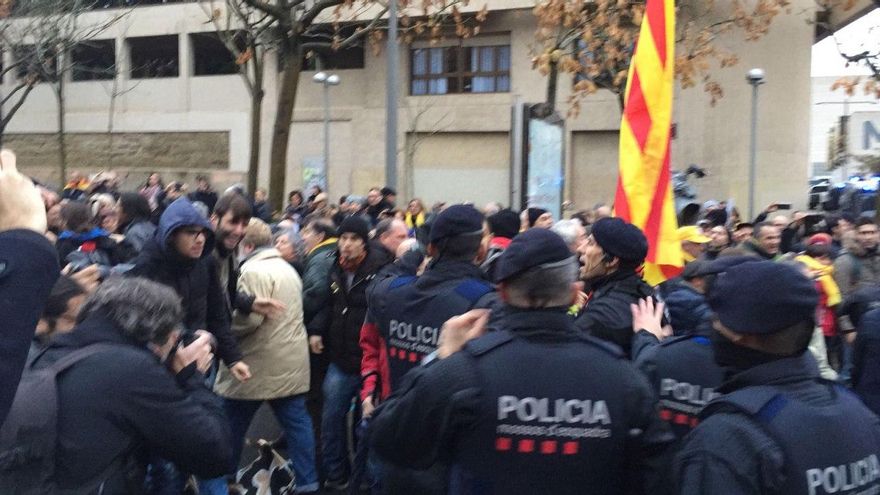 Durante las primeras horas del operativo, un grupo de 350 personas protestaron, con gritos de “manos arriba, esto es un atraco”, frente a las puertas del Museo. Allí se vivieron los primeros momentos de tensión cuando un grupo de unos 30 manifestantes intentó romper el dispositivo de seguridad de los Mossos d'Esquadra. Los manifestantes, que portaban banderas esteladas, trataron de acceder por la fuerza en el Museo para impedir que salieran las obras, por lo que los agentes cargaron contra ellos.