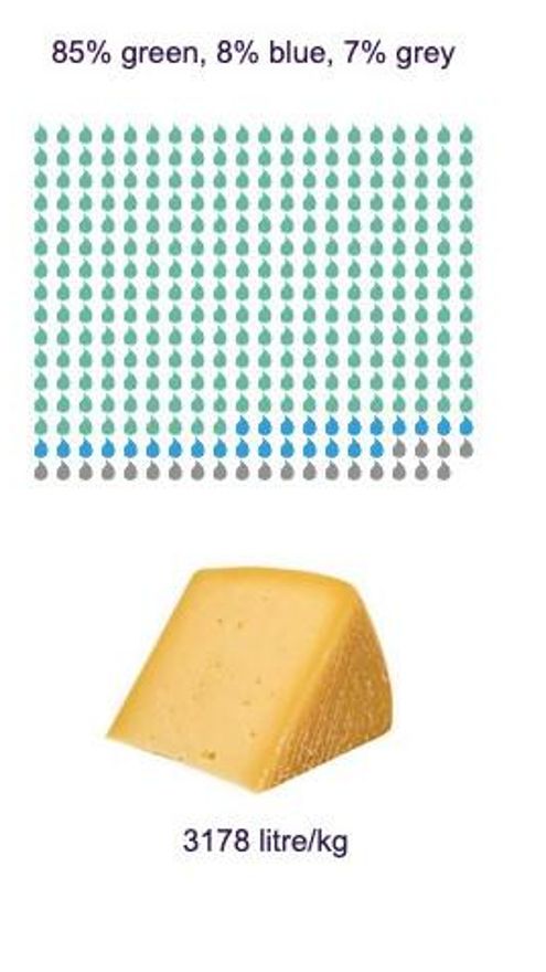 Para una dieta solo a base de vegetales se necesitan 0,7 litros de agua de media por kilocaloría. Esto incluye una mezcla de cereales, azúcares, raíces, legumbres, frutas, verduras y frutos secos. Si pasamos a una dieta de productos lácteos y huevos, la necesidad de agua sube a 1,7 litros por kilocaloría (leche, mantequilla, queso y huevos). Pero en la categoría carne y pescado, la media de agua se dispara hasta más de cuatro litros por kilocaloría, “teniendo en cuenta carne, pollo, cerdo y pescado según el consumo medio en los países industrializados”.