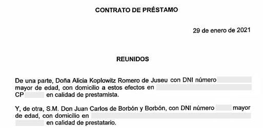 Alicia Koplowitz le prestó al emérito 200.000 euros al 3% de interés, con algunas cláusulas para facilitar una cómoda devolución. Aquí el pdf firmado. Es la punta del iceberg de una operación coordinada a su alrededor para salvarle de la quema judicial. En esa operación participaron también otras fortunas españolas: Vicente Boluda, Félix Sanz Roldán, Jaime Castellanos, Alejandro Aznar (no es el que estás pensando, es otro), Diego de Alcázar y los hermanos Corsini, entre otros. Gracias a que el dinero llegó rápido, Juan Carlos de Borbón regularizó con Hacienda antes de que se le notificara la investigación. ¿Y cómo supo el rey emérito que le estaban investigando antes de que le notificaran? Esa es otra historia.