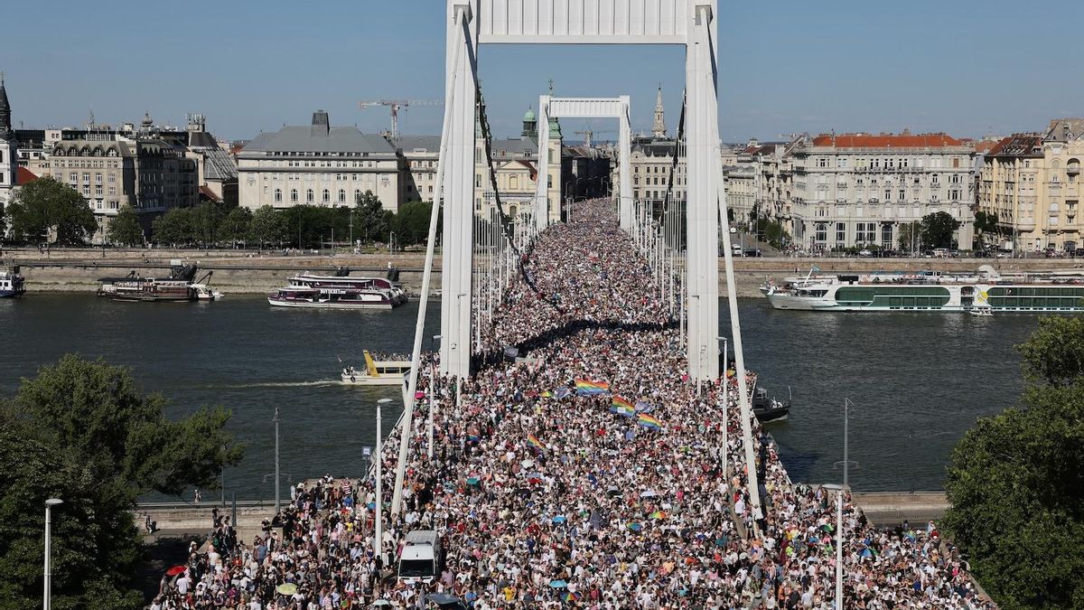 Y déjame que termine este bloque con una imagen de otra causa global y luego ya vamos con lo demás. Es la de miles de personas en la capital de Hungría desafiando la prohibición del Gobierno de la ultraderecha, los amigos de Vox, que habían declarado ilegal cualquier manifestación en estos días de Orgullo. Momento para la historia LGTBIQ.