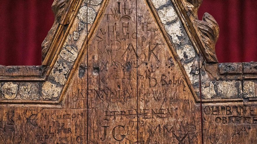 - No conocía casi nada de los muchos detalles que tiene la coronación en Reino Unido. Me ha gustado este que destaca Nuria Pérez: la silla donde sucede el gran momento-corona, construida hace 700 años, está llena de ‘garabatos’, de incisiones en la madera. Son graffitis al estilo siglo XVIII, obra de estudiantes y curiosos que pasaban por Westminster. Uno dice: “P. Abbot durmió en esta silla el 5-6 de julio de 1800”.