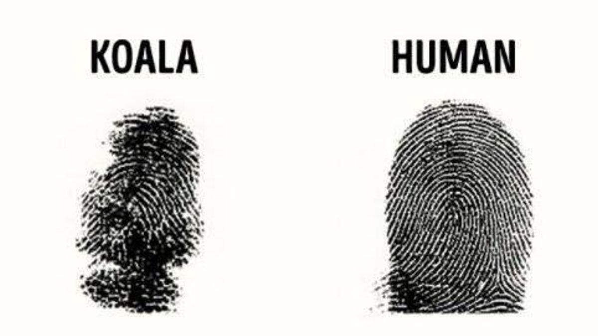 No sabía que un forense puede tener muchos problemas en saber si un asesinato ha sido cometido por una persona o un koala. Me explico: las huellas dactilares de los koalas son casi idénticas a las humanas, incluso al microscopio. Es un ejemplo de evolución convergente, por la que especies no relacionadas entre sí desarrollan soluciones parecidas para la misma necesidad: en este caso, manipular objetos o agarrarse con precisión.