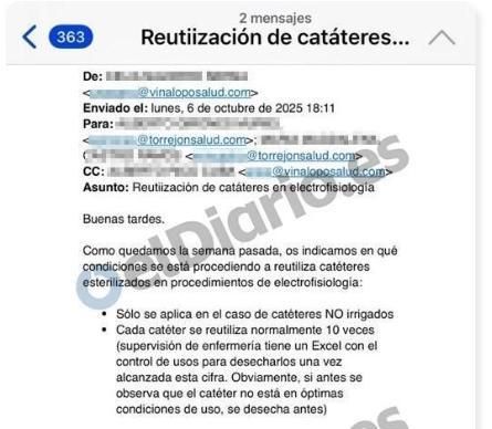 La noticia que desvelamos esta mañana es que la empresa de sanidad privada Ribera Salud, que gestiona hospitales de sanidad pública, ha estado reutilizando para diferentes pacientes un material sanitario que solo se puede usar una vez por riesgos de contagio. Un correo interno revela que la empresa reutilizó hasta diez veces catéteres en su hospital público de Elche y ordenó hacerlo en el hospital público madrileño de Torrejón, donde algunas fuentes ya habían alertado de esta práctica. No era un caso aislado, una mala praxis de un equipo médico concreto de un hospital concreto. Había una instrucción, una orden de la empresa para ahorrar dinero. Aquí tienes el correo
