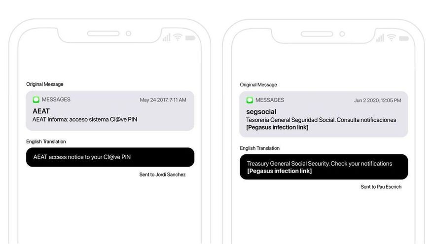 Para que su teléfono quede infectado y totalmente expuesto a los espías, las víctimas solo tuvieron que hacer un movimiento: hacer click en un enlace que ellos creyeron que era otra cosa. Según cuenta mi compañero Carlos del Castillo, que lleva años explicando cómo Pegasus se usa contra activistas en todo el mundo, quien quiera que haya intentado espiar a los políticos catalanes les hizo picar en el anzuelo suplantando la identidad de ONG, de instituciones públicas como la Agencia Tributaria y de medios de comunicación. Esto si lo hace cualquier otro es phishing y es delito. Mira ejemplos de los mensajes: