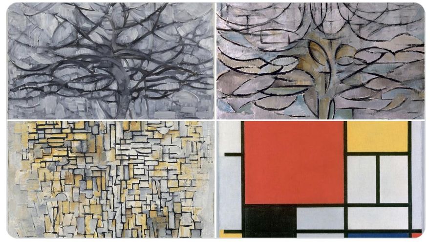 - No sabía que esos cuadrados y rectángulos tan característicos de la pintura de Piet Mondrian tienen un origen muy sorprendente: los árboles. En este hilo de Twitter, una historiadora del arte te enseña cómo lo que empiezan siendo cuadros con árboles secos van mutando en troncos rectos y finalmente pura abstracción de colores.