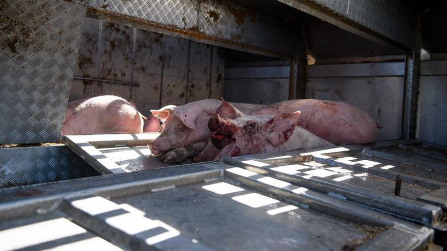 Venían del infierno que son sus vidas en las granjas e iban al infierno de un matadero. El trayecto también era infernal: amontonados en un camión, sin espacio ni aire, acaso doloridos por las fracturas de patas o costillas que les hubiera producido el trato violento de quienes manejan sus cuerpos para sacarlos de los corrales de engorde o las jaulas de gestación, conducirlos por un pasillo, hacerlos subir a esos camiones. Digan lo que lo digan los explotadores de la industria porcina y diga lo que diga un bienestarismo colaborador, solo hay una manera de manejar los pesados cuerpos de unos cerdos que se resisten al abuso y la muerte: por la fuerza. Como mínimo, empujones. Las investigaciones activistas siempre desvelan que hay, además, golpes, patadas, puñetazos, descargas eléctricas. Explotación y violencia.