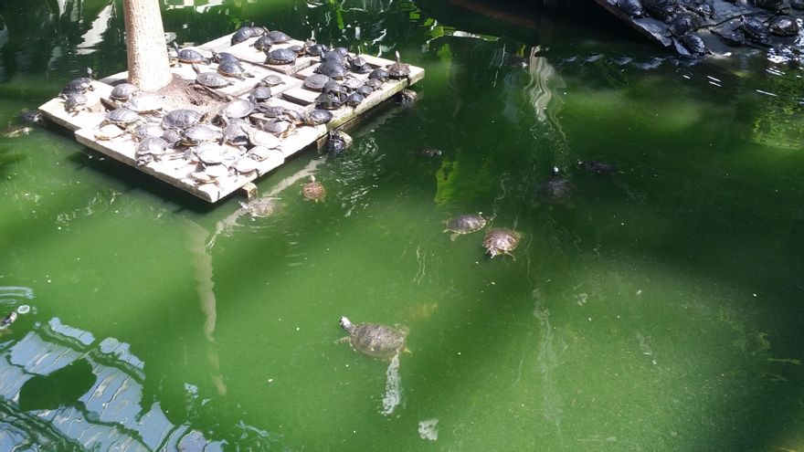Otro de los puntos más controvertidos es la calidad del agua en el que viven estos centenares de animales. Es muy llamativo comprobar que cuando una tortuga se sumerge, se la deja de ver a los dos o tres centímetros de profundidad por el intenso color verde del agua. “El color es por la vegetación del estanque”, explican fuentes de Adif. “Se realiza una limpieza total una vez al año, donde se retiran las tortugas, se limpia todo y se vuelven a depositar. No se hace más a menudo para no estresarlas, ya que son animales muy sensibles a los cambios”. Aunque el último vaciado del estanque se produjo el pasado mes de mayo, la sobrepoblación de tortugas y los desperdicios que arrojan los visitantes hacen que tenga el aspecto actual. Por ello, Adif asegura que en breve se mejorará el sistema de depuración del agua para que tenga más capacidad de filtrado y dure más tiempo limpia.
