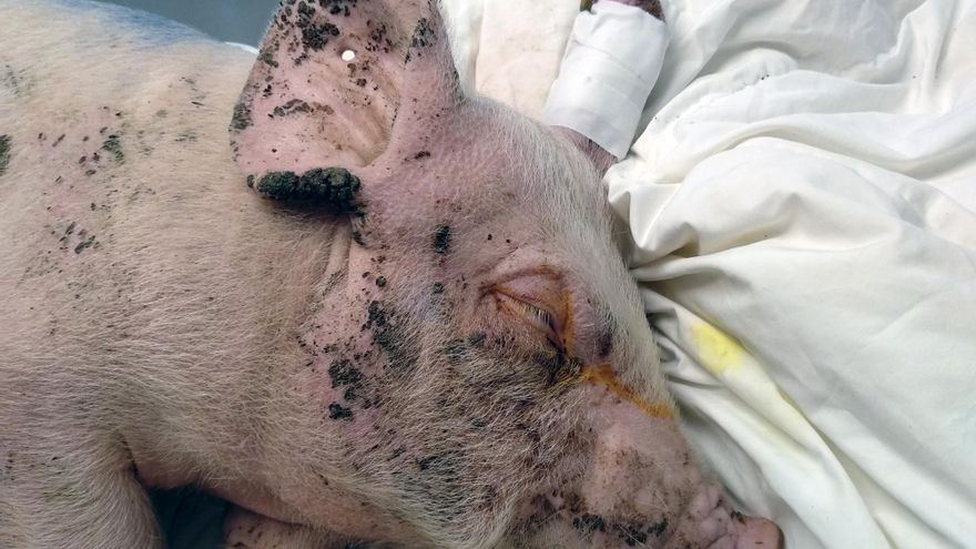 La pequeña cerdita no apoyaba una de las patas traseras, según el veterinario por un aparente problema muscular, quizá debido a un fuerte golpe. Pero lo más preocupante era la infección en los pulmones y el líquido acumulado en la pleura, algo muy doloroso y que genera fiebre, lo cual explicaba su inmovilidad. Jaio, ‘nacer’ en euskera, estuvo ingresada 48 horas para recibir tratamiento intravenoso, y después fue trasladada al santuario Gaia, con cuyos responsables se había acordado el acogimiento desde el primer momento. Ellos se hicieron responsables de los gastos veterinarios y del transporte, y su mejoría al sentirse libre ha sido un bálsamo en medio del infierno.