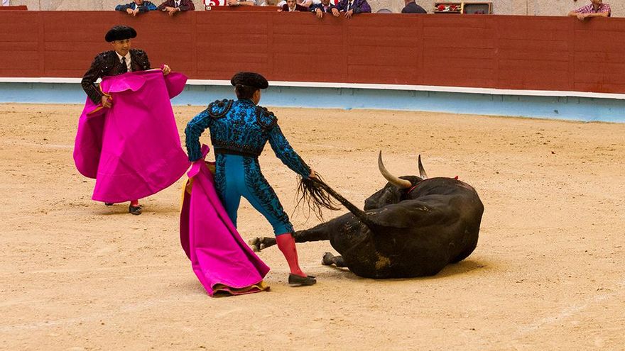 Después de la tortura llega la puntilla, que supuestamente acabará con la vida del toro. Foto: colectivobritches.com