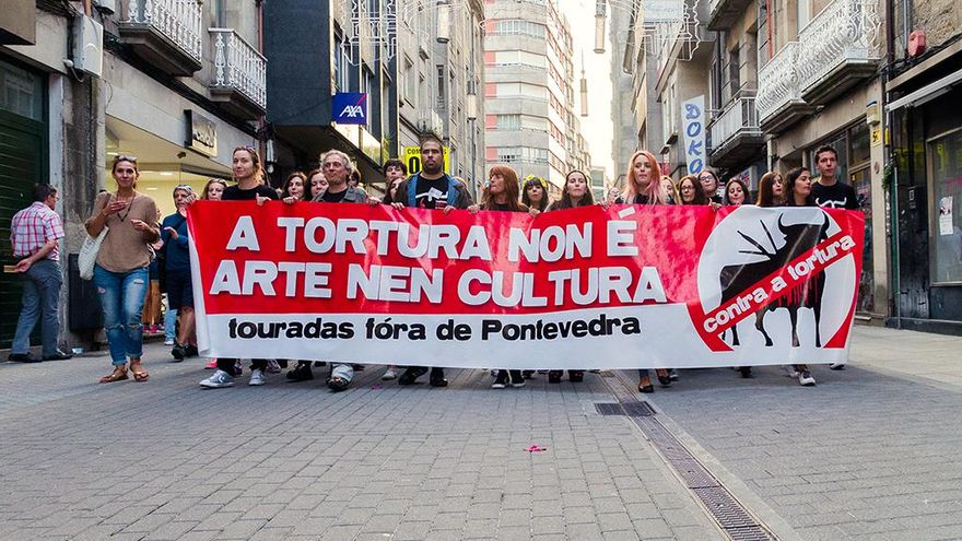“Este año acudí a la manifestación con la total seguridad de que iba a ser una de las últimas a las que iría”, asegura Alberto González, activista por los derechos animales. “La manifestación fue la más grande de la historia, y junto con la prohibición de los circos con animales en nuestra ciudad es un reflejo de la creciente conciencia de la gente para la que la tortura y el sufrimiento animal no forme parte del ocio”, afirma. Igual de optimista se muestra Melodie, de la Fundación Alma Animal. “Ibas por la manifestación andando y se unían las personas que nos íbamos encontrando por la calle, mientras que la plaza no se llenó ni un tercio”, explica Melodie, que portaba junto con otros la pancarta de la plataforma La Tortura no es Cultura, que se unió a la reivindicación de acabar con las corridas de toros en Pontevedra. “Es que... Galicia no es taurina”, concluye.
