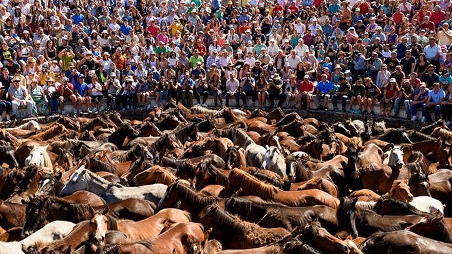Declarada Fiesta de Interés Turístico Internacional, la Rapa das bestas de Sabucedo (Pontevedra) se remonta, según la tradición oral, al período en el que la peste bubónica azotó duramente la región, hace más de cuatrocientos años. Dice la leyenda que unas hermanas ofrecieron a San Lourenzo —patrón de la parroquia— dos de sus yeguas si las protegía de la enfermedad. Pasada la peste las mujeres cumplieron su promesa y entregaron los animales al párroco de Sabucedo. Con el tiempo los caballos se multiplicaron y son ya varias manadas las que viven en los montes de forma salvaje.