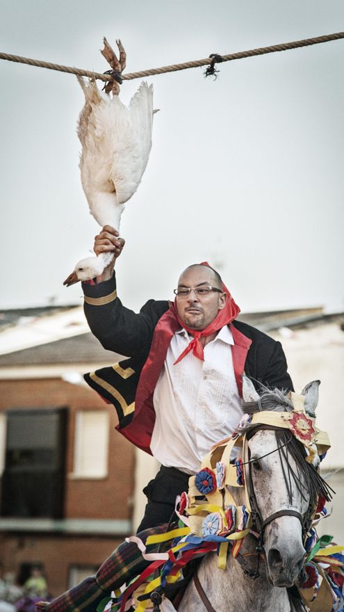 El plan original eran 15 fiestas en un año, pero tuvimos que cancelar dos de ellas por problemas de logística y agenda, otra por miedo a vernos envueltos en una batalla campal -en el Toro Jubilo, como acabó sucediendo- y otra porque, sorprendentemente, corrigieron su actitud y no torturaron animales: el Judas de Robledo de Chavela. Así que son 11 fiestas: El 'Toro Enmaromado', en Benavente; los 'Bous a la Mar', en Denia; 'Correr los Gansos', en El Carpio de Tajo; la Suelta de Patos, en Sagunto; el Toro Embolado, en Amposta; Los Gansos de Lekeitio; el Toro de la Vega, en Tordesilla; Las Luminarias de San Bartolomé de Pinares; La Batalla de Las Ratas, en Puig; el Peropalo, en Villanueva de la Vera, y los Toros de San Marcos, en Ohanes.