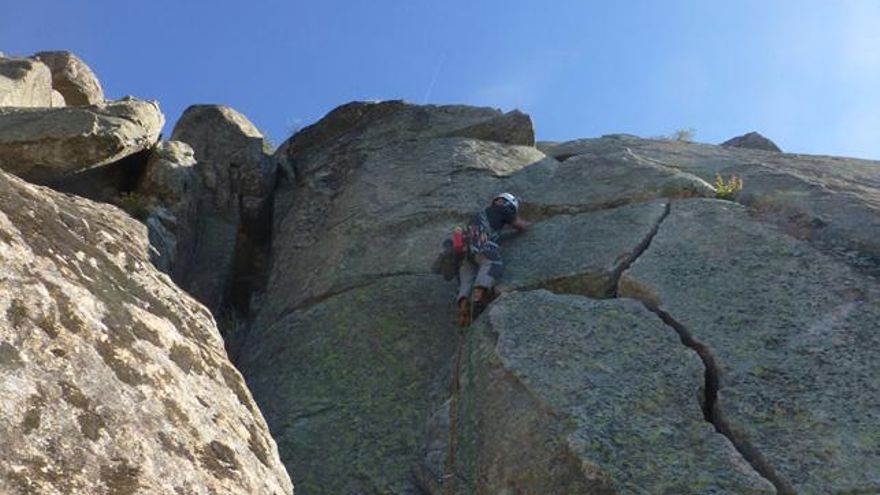 Seguimos con el L3, de Vº+, en el que iremos por placa con relieve, buscando el árbol que tenemos justo encima. Muy bueno también.