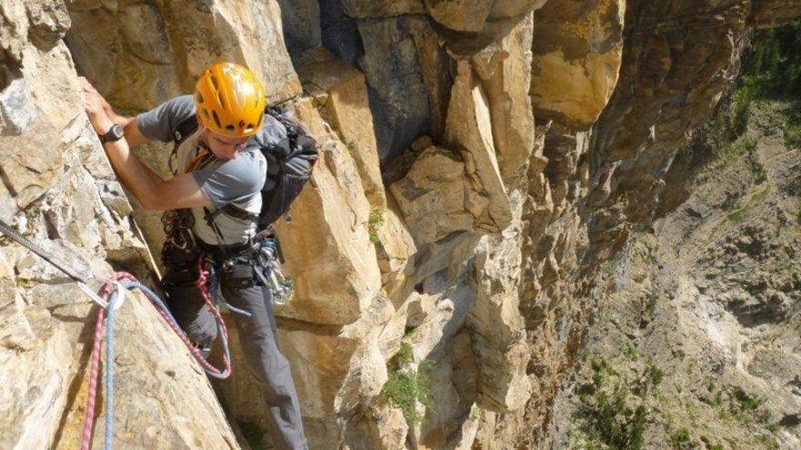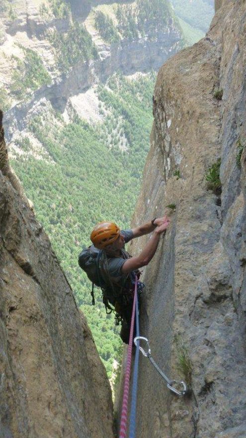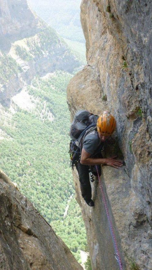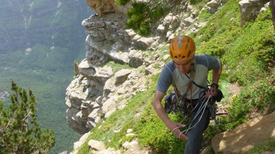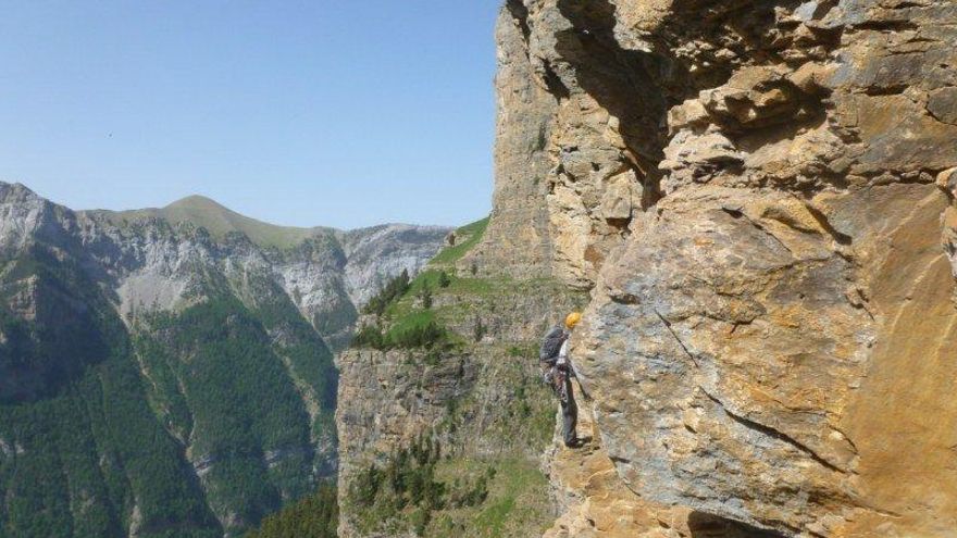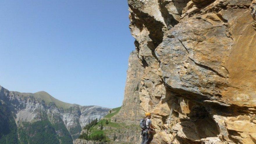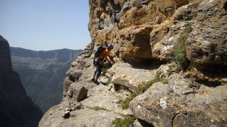 En Ordesa, la escalada se caracteriza por la complejidad de sus recorridos, sinuosos a la fuerza, la peculiar y estratificada roca de sus vías, exposición asegurada, escalada atlética, y verticalidad garantizada, cuando no superada