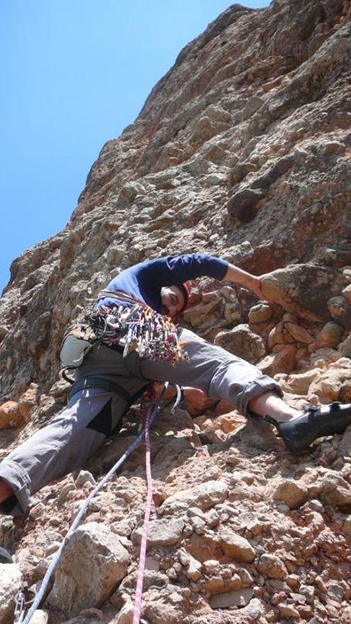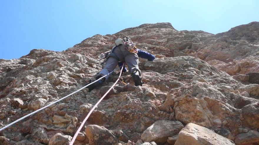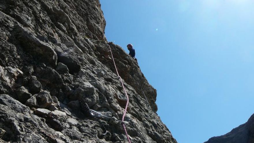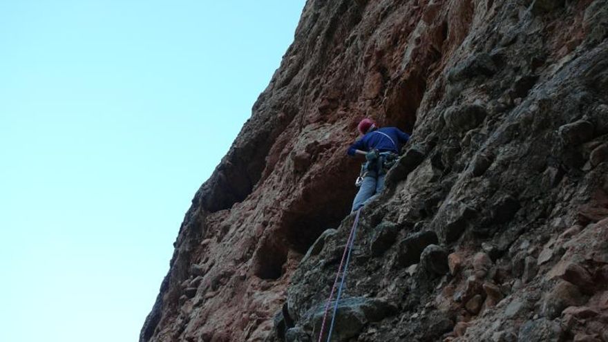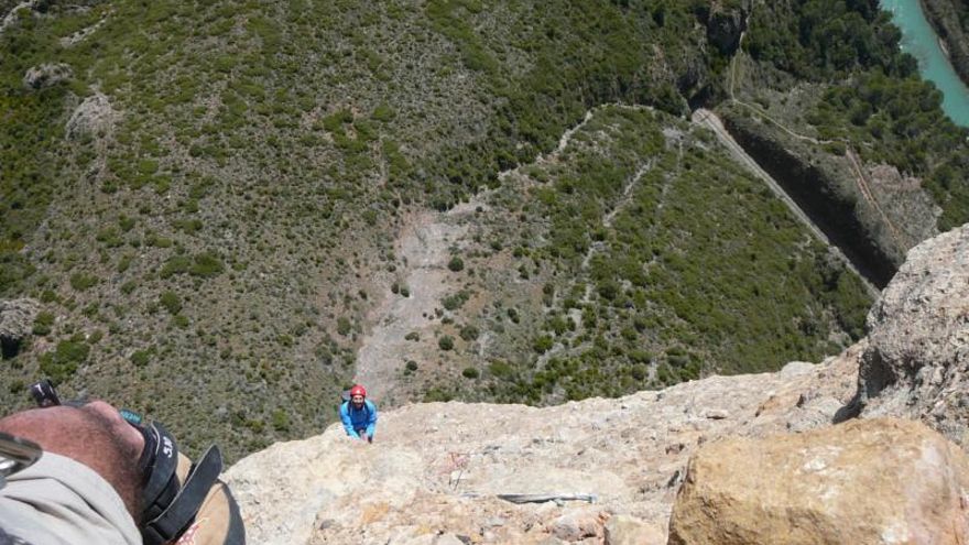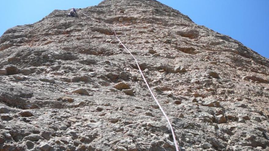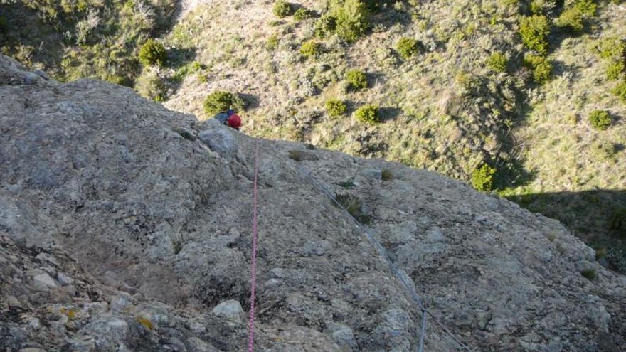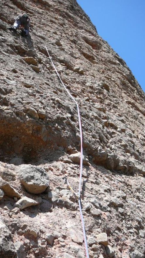 Y viéndome mira hacia arriba, el aleje, la verticalidad y mi falta “cojonil”, se “excusó” diciendo que le gustaría hacer el largo en libre y tirá para arriba