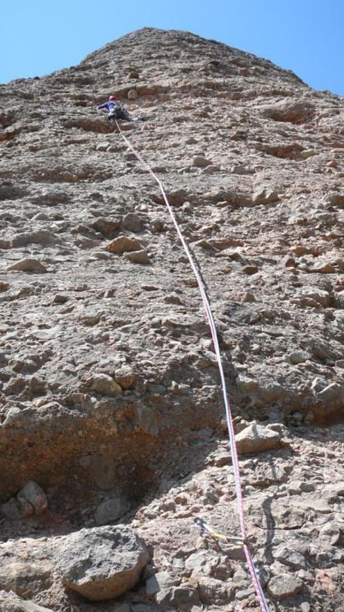 La vía a la que vamos, es una de esas genialidades de la famosa cordada maña, que busca las “debilidades” de la pared, trazando una línea, que demustra que la linea recta no es la distancia más corta entre 2 puntos