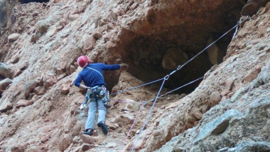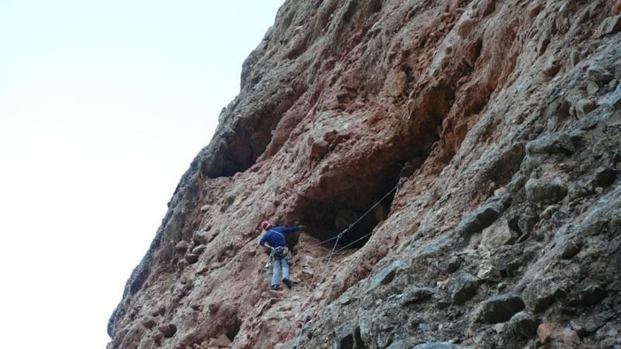 Panzas, cuevas, fisuras, chimeneas, placas, y travesías, infinidad de travesías, nos hacen ir superando metro a metro los 300 metros de altura del Mallo, en unos 350 metrtso de espectacular recorrido