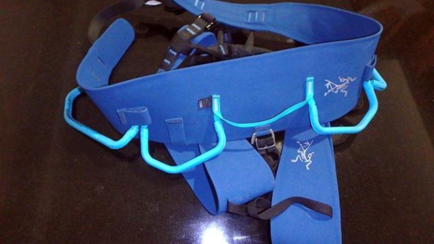 El anillo ventral, recio y muy consistente, con un sistema de aviso de desgaste, cierra y completa este fantástico arnés de Arc’teryx.