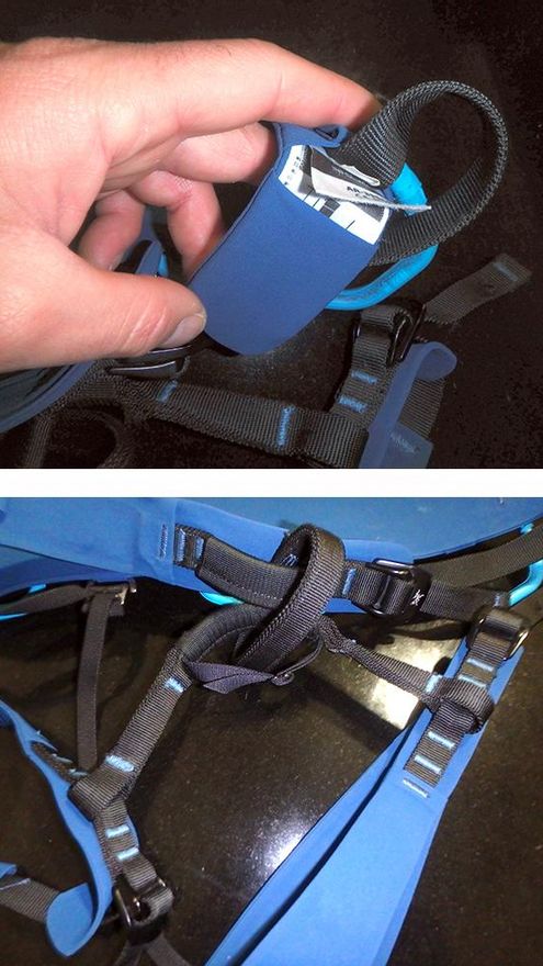 Cuenta también con cuatro porta Ice Clipper para llevar los tornillos de hielo… Y no se mueven ni un ápice, incluso si llevamos varios.
