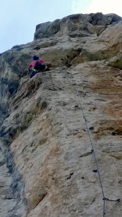 Por otro lado, cuenta con cuatro portamateriales, los traseros unos centímetros más grandes que los delanteros que, gracias a su dureza y ángulo, nos permiten colocar y sacar las cintas exprés con mucha facilidad. Se comportan de forma muy noble, sin doblarse ni molestar, incluso cargándolos mucho con todo el material necesario para afrontar una escalada en pared desequipada (cintas, friends, mosquetones, etc.)
