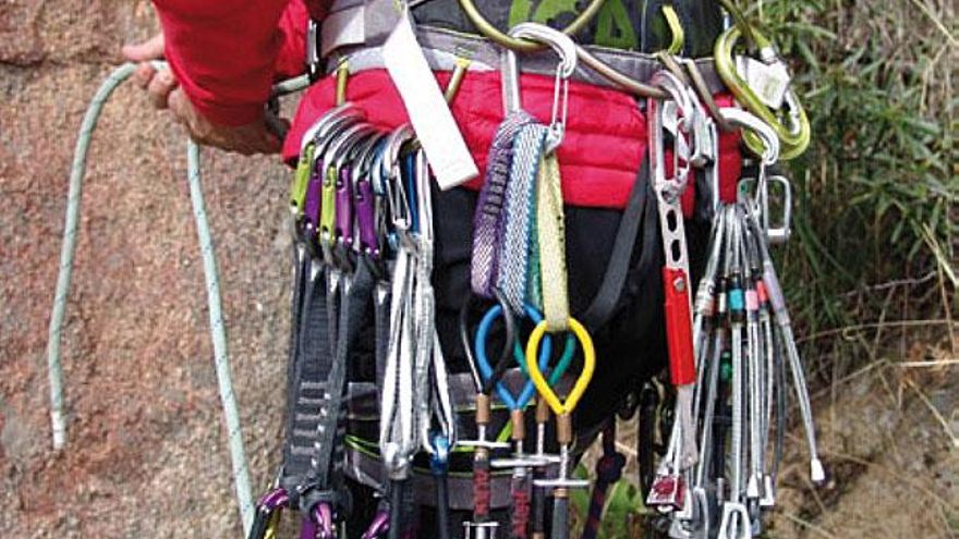 El Warden además cuenta con seis anillos portamateriales bien situados y accesibles. Una vez cargados a “tope” equilibran muy bien y están reforzados lo que permite meterles mucho material. El anillo ventral es grueso, de 25 mm, y con un sistema No Twist, patentado por Cassin, que impide el volteo del mosquetón del asegurador generando tensiones “extrañas” en el mismo.