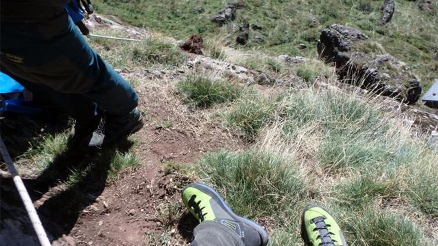 La entresuela microporosa es lo suficientemente amortiguadora para que andemos durante horas de una forma cómoda, por mucha bajada que haya, y protegiendo nuestras rodillas en las largas aproximaciones por pistas y caminos irregulares.