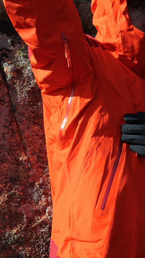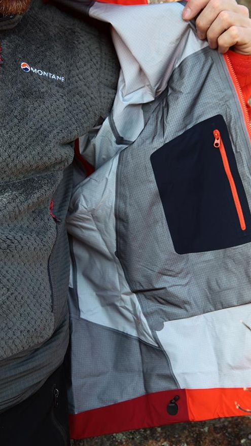 En el caso de este modelo viene con dos tipos de Gore-Tex Pro. El N40p-x GorE-Tex Pro en el cuerpo, donde se necesita mayor traspiración, y el N80p-x Gore-Tex Pro, que refuerza las áreas de alto desgaste como los hombros, parte superior de los brazos y la parte baja trasera, justo donde más sufren las chaquetas ya sea por caídas esquiando, al cargar con mochila o al apoyarnos sobre roca.