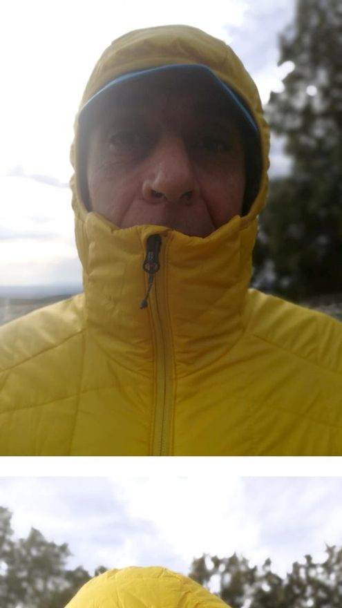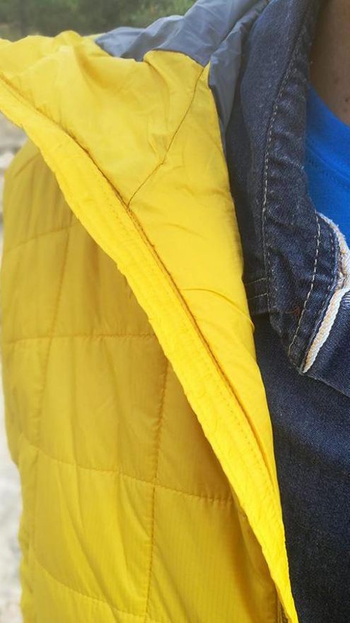 En el exterior de la prenda nos encontramos un nylon de 20 denier y unos 39 gramos por metro. Así que, por peso y resistencia tenemos ante nosotros una chaqueta aceptablemente recia para su ligereza, y que resiste bien los enganchones con zarzas y ramas gracias a su construcción antidesgarro. Debo admitir que ha funcionado muy bien en este aspecto y, después de varias salidas por La Pedriza, donde los tropezones con alguna rama perdida son más que habituales, hemos vuelto con la chaqueta de una pieza e intacta.