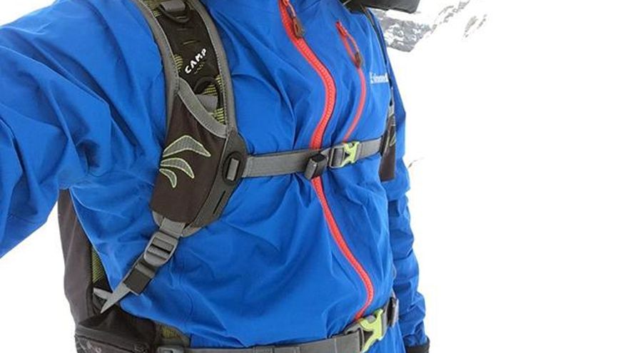 Fabricada en poliamida y poliuretano dispone de un solo bolsillo exterior de no muy amplias dimensiones con cremallera y tirador, situado en la parte alta del pecho, por lo que podemos acceder a él de manera cómoda con el arnés puesto. No obstante, algo más complicado nos puede ser extraer o introducir objetos en su interior con la cinta de pecho de la mochila abrochada.