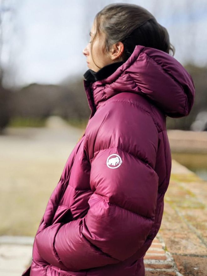 Mammut Glacier Glow Ih Hooded se mueve entre ese calor de plumón y una estética más amplia, cómoda y usable en ciudad. Un muy buen puente entre técnica y “uso real”.