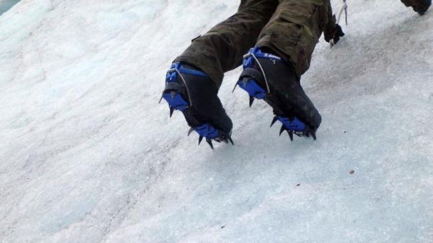 En terreno poco inclinado: ahí es donde puede pinchar algo el crampón, pero como ya hemos comentado, es un modelo pensado para las actividades técnicas con predominancia vertical.