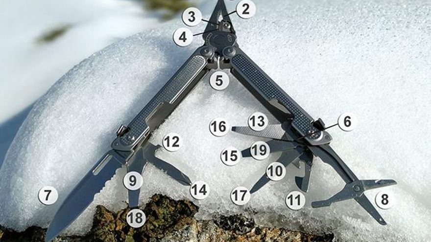 La Leatherman Free P2 nos ofrece 19 herramientas, tan solo superada por su hermana mayor la P4. Es una de las más completas de la gama Free. En concreto podemos encontrar las siguientes: