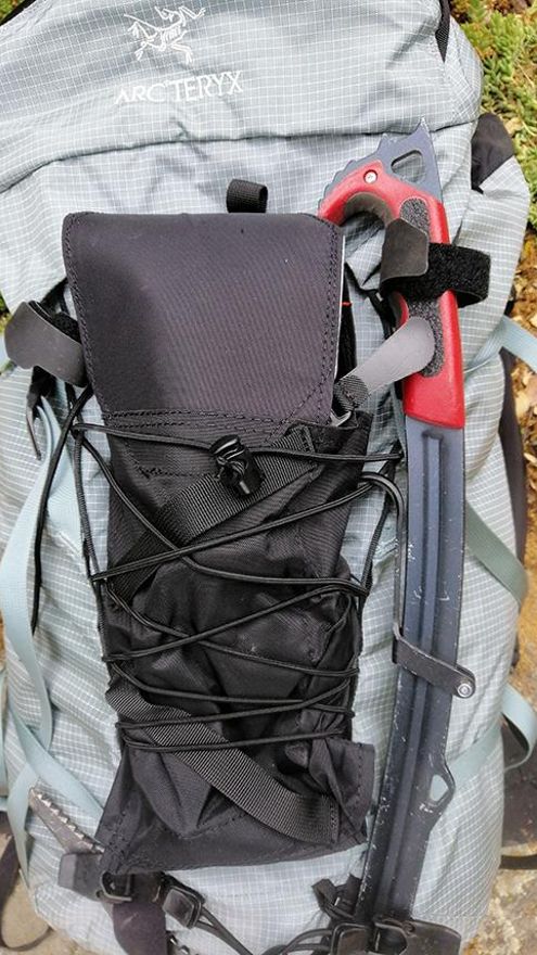 También cuenta con un par de porta piolets, con un sistema de sujeción/extracción de calidad y muy bien diseñado que facilita el uso de la herramienta incluso con guantes.