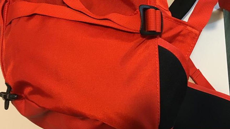 El ajuste (hay que partir de la base que no van a ser cargas muy pesadas como en una mochila de trekking de mayor capacidad) es bastante bueno, con unas hombreras acolchadas y una anchura suficiente para que no se nos clave en los hombros y nos permite el movimiento de brazos necesario durante la escalada. Para evitar que las hombreras queden holgadas lleva además una cinta de ajuste al pecho con tres posiciones en altura para mejorar la regulación según nuestra constitución.