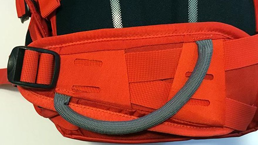 Finalmente, nos gustaría decir que el tejido exterior, disponible en dos colores, en rojo o en negro, es 330D Cross/Trishield Dura/Hidroshield, muy resistente e impermeable, con refuerzos en las zonas donde la mochila sufrirá más desgaste (base y donde van ubicados los piolets). Quizás hubiese sido también interesante haber impermeabilizado las costuras de las Daisy Chain y de las cremalleras para que la impermeabilización hubiera sido completa.