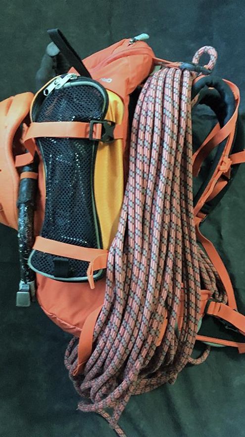 Esta mochila nos permitirá aproximar a la escalada con todo este material bien distribuido, fijado y repartido el peso, parte en el interior, lo más sensible, y el resto fuera. Para colocarlo en el exterior se pueden utilizar las correas de compresión laterales que tienen una longitud generosa, y que se agradece sobre todo para transportar material adicional durante la aproximación (incluso botas de alpinismo si nos vemos obligados).