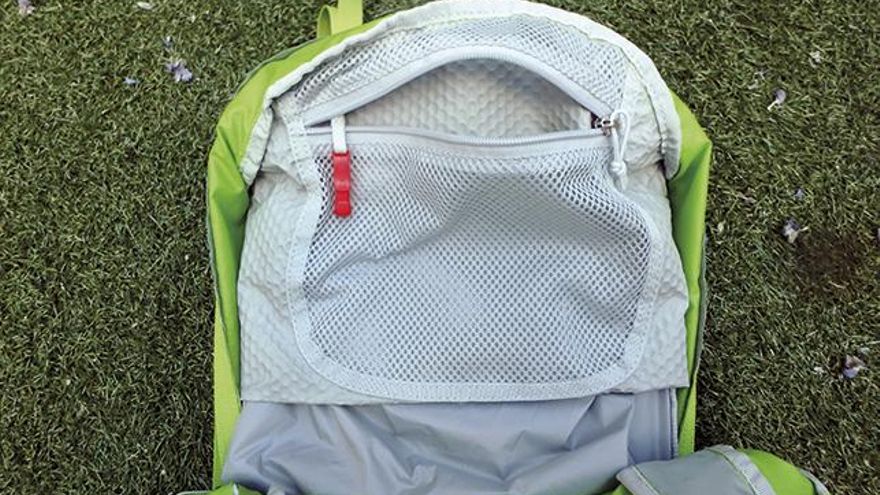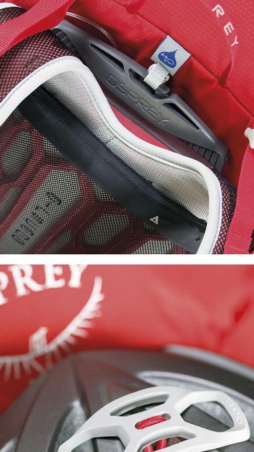 Por supuesto, no podía falta el espacio para las bolsas de hidratación que encontraremos entre la espaldera y la mochila, con un cierre para colgarla y que no se nos vaya al fondo del compartimento.