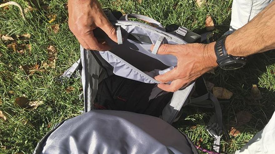 La espaldera es bastante rígida, lo que evita que la mochila se “desmorone” cuando está vacía. Pero no pensemos por ello que rigidez es sinónimo de incomodidad en este caso, ya que el material del que está fabricada ofrece el acolchado justo, a lo que se suma un sistema de nervios en bajo relieve que facilitan la evacuación del sudor y la regulación de la temperatura.