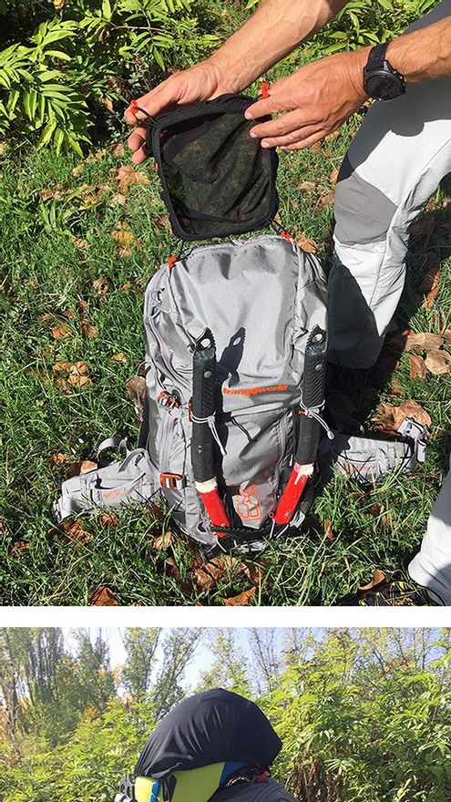Otro gran detalle de esta mochila es el bolsillo porta-crampones, que puede ser empleado hasta para meter una prenda ligera, como por ejemplo un cortavientos o chubasquero.