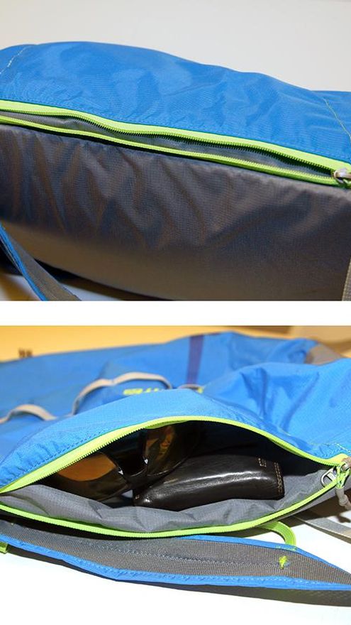Aunque no se gana mucho frente a llevarla enrollada, el doble tirador de la cremallera del bolsillo posibilita replegar la mochila completa en su interior.
