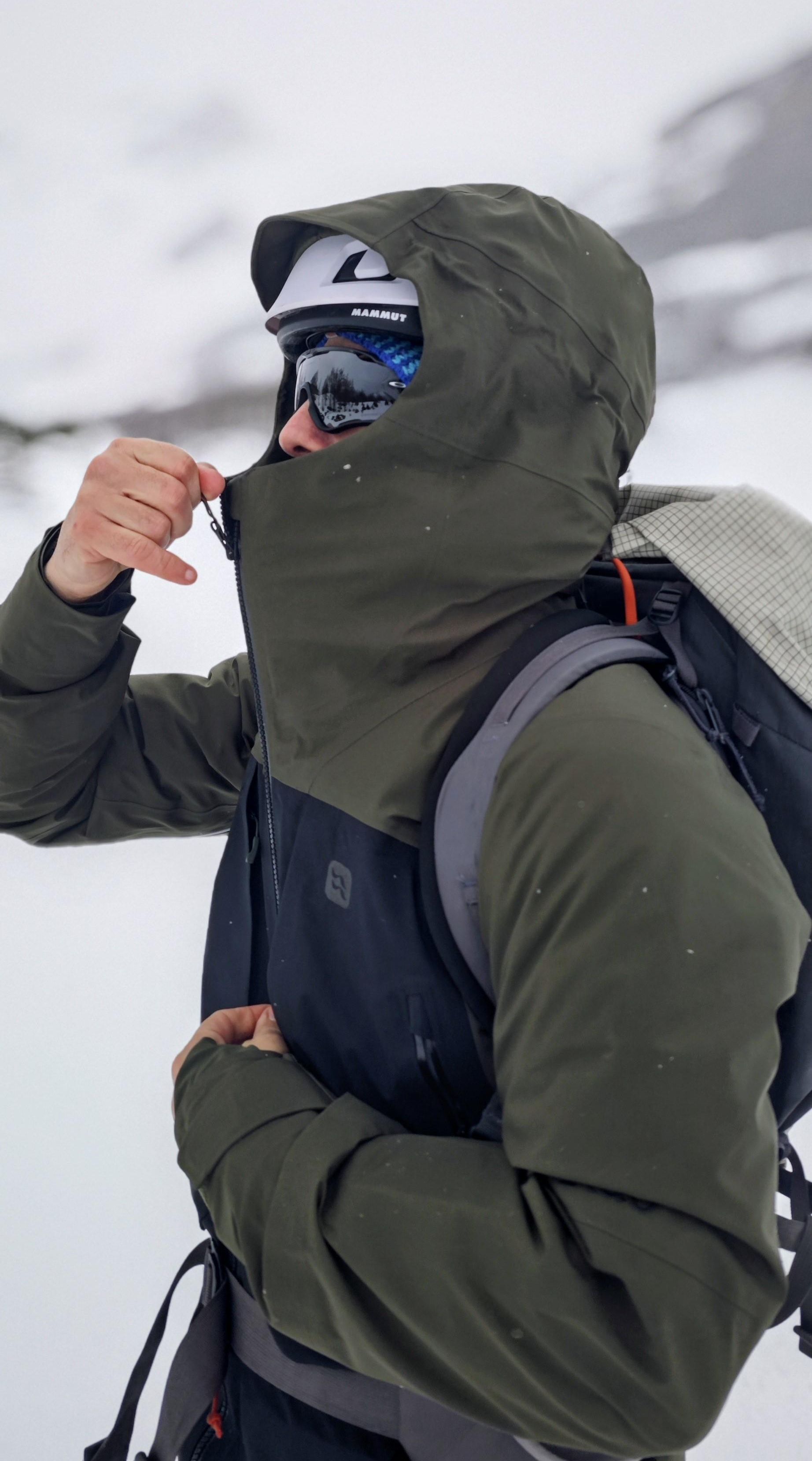 La capucha merece un capítulo aparte. Destacar que es profunda, regulable y compatible con casco. En tormentas de nieve intensa y viento es uno de los elementos que más destaca y marca la diferencia. No baila, no se levanta y mantiene la cobertura sobre la máscara o gafas sin molestar. Es, simplemente ¡brutal!