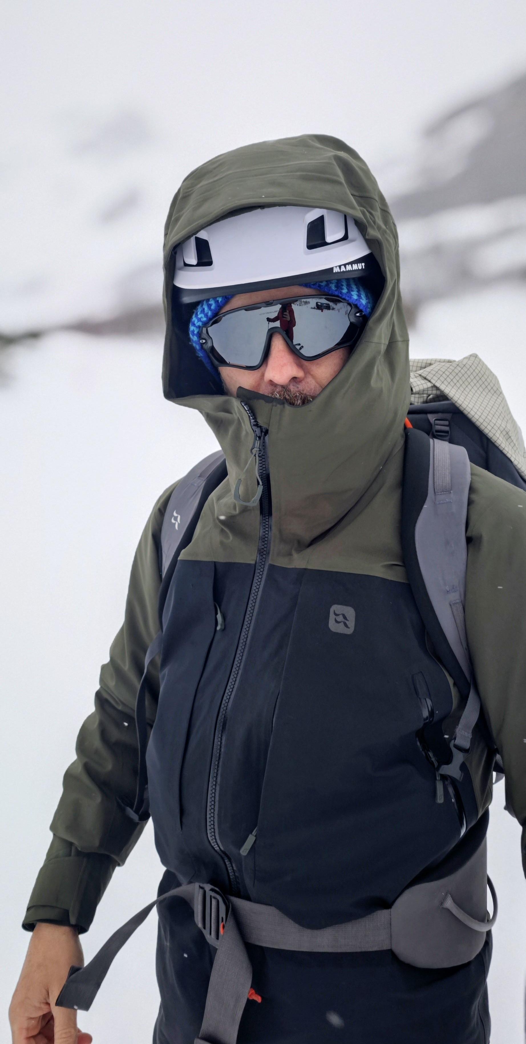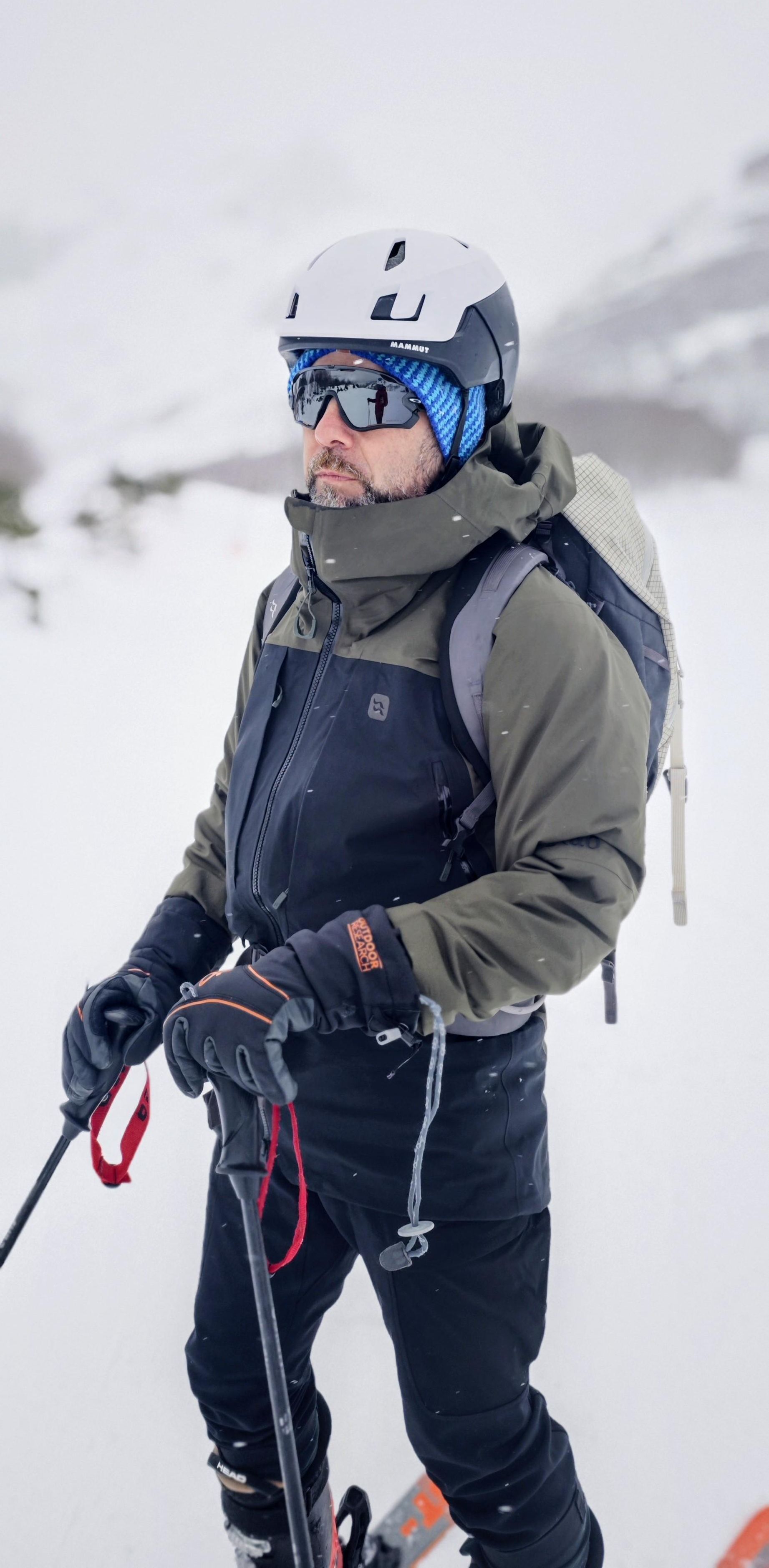 También es importante destacar que la sensación al tacto no es “fina” ni delicada. Esta chaqueta parece dura de narices... y lo es. El exterior resiste roce con mochila, arnés, esquís o una chimenea de granito a 3.000 metros sin quejas y sin que se desgaste rápidamente. Ese enfoque robusto tiene una contrapartida, y es que es algo más pesada que los “shells” ultra-ligeros del mercado. No obstante, en una tormenta de verdad se siente como un activo y no como un defecto. En nuestra opinión es las prenda que quieres tener puesta cuando la cosa se pone fea de verdad.